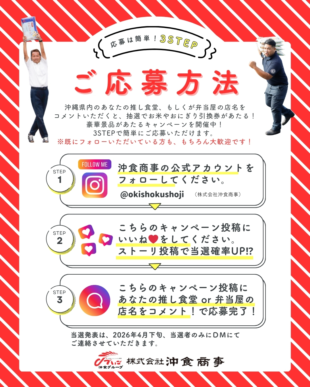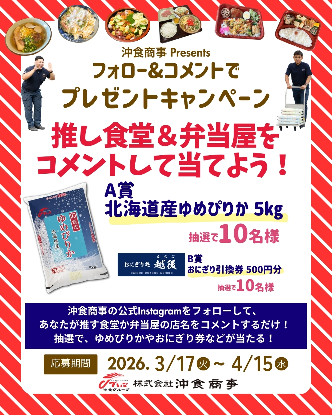 沖食商事Instagramフォロー&コメントキャンペーン実施中!推し食堂&弁当屋を教えて!!
